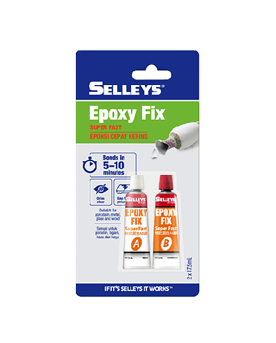 Selleys Epoxy Fix Super Fast is a fast setting 2 part epoxy adhesive that sets in 5 minutes.